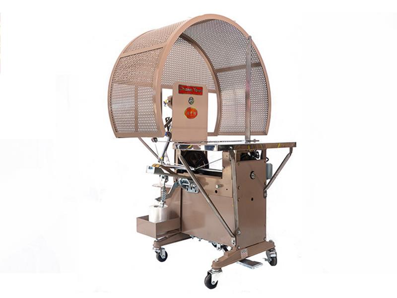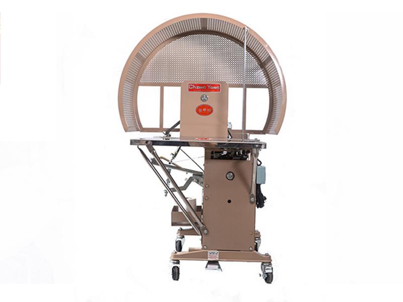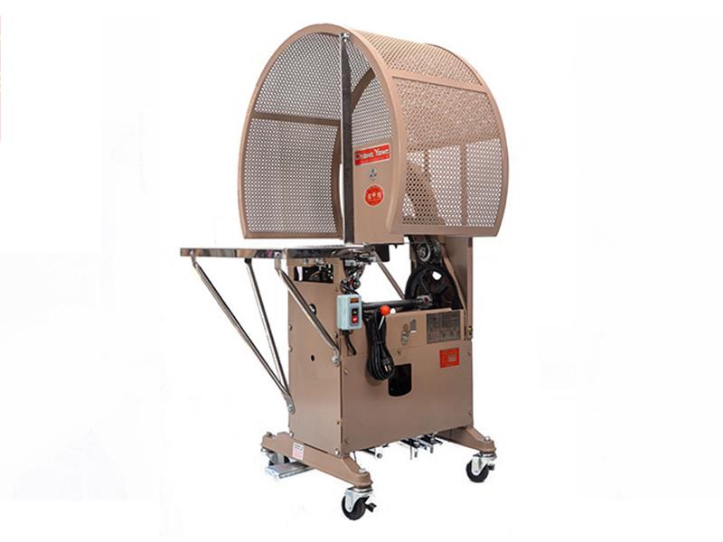 該打包機主要工作原理是當插入包裝帶后能自動完成聚帶、熱合、切斷、出帶的捆扎過程,且能自動停機。在國外樣機的基礎上重新改進設計制造而成,使用范圍廣,不管大小包裝,不用調整機器就可以打包該機屬機械式結構,部分采用進口零件,后刀刃穩定可靠,調整方便等特點。