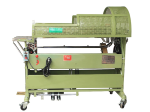 2.將包裝繩穿過立式廢紙包裝機后面的自動彈性裝置,沿包裝帶槽放置,然后將包裝帶系在包裝槽底部的拉位,將自動彈性裝置旋轉90度,關閉底門鎖緊。